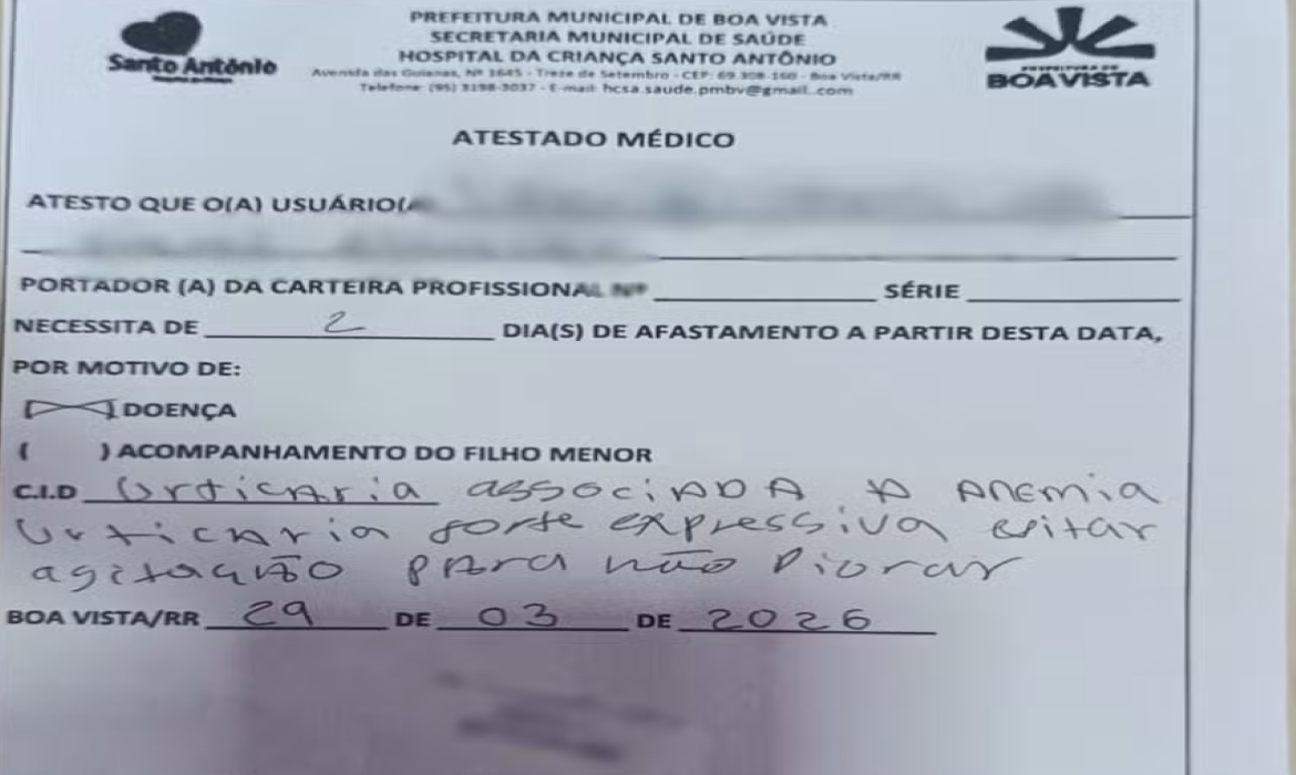 Uma estudante de 16 anos foi detida nesta terça-feira (31) após apresentar atestados médicos falsos em um colégio militarizado localizado na zona oeste de Boa Vista. O caso foi identificado pela direção da escola, que acionou a Polícia Militar ao suspeitar da autenticidade dos documentos. A desconfiança surgiu após a análise dos atestados entregues pela […]